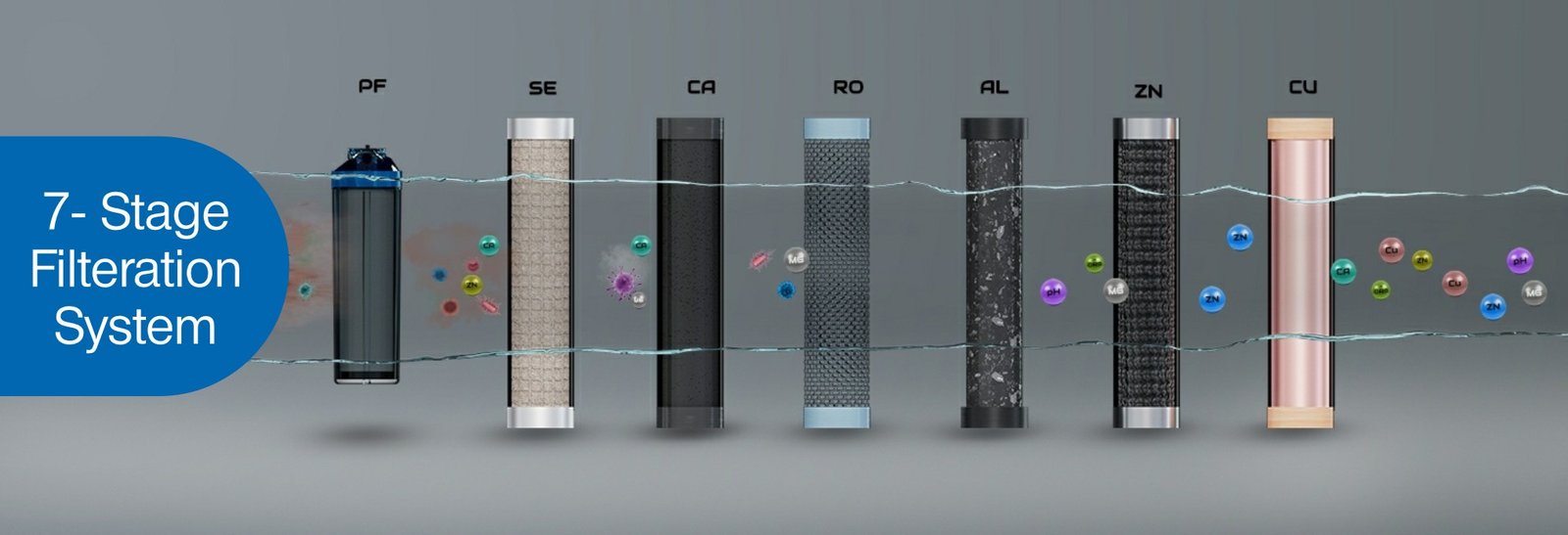 Reverse Osmosis (RO): Removes dissolved impurities, minerals, and microorganisms. Ultraviolet (UV): Kills bacteria and viruses but doesn’t remove dissolved impurities. Ultrafiltration (UF): Removes microorganisms and some suspended particles. Activated Carbon: Removes chlorine, bad taste, and odor.
